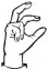 На ћирилици написано АНДРЕЈА БЕЛЕНЗАДА састоји се из 16 слова [?]. Исписано ћириличном једноручном азбуком за глувонеме: